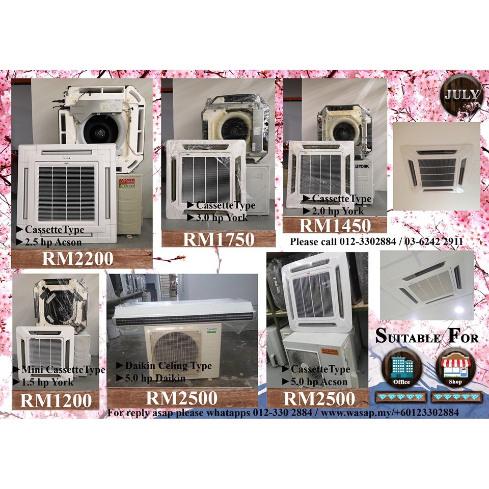 These ceiling cassette usually range from rm 429 00 to rm 9 100 00 in malaysia.